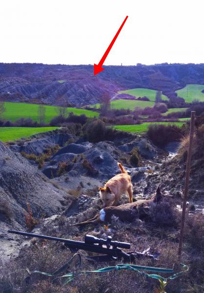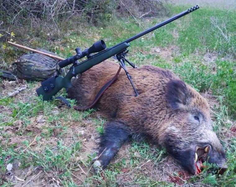 Espectacular foto, tanto para el jabalí que me parece de exposición, pues tiene unos colores y boca muy guapos y el rifle que da la sensación de tener un cañón de artilleria ,más que nada por longitud, por otra parte necesaria para los tiros que has hecho con el. Una pasada.