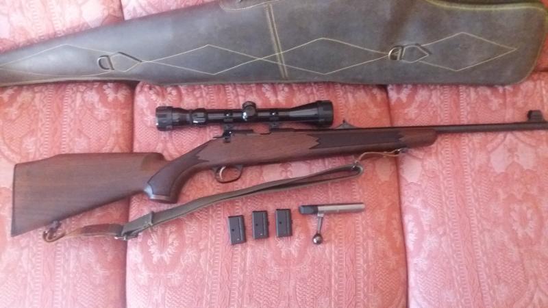 La carabina está en muy buenas condiciones yo he sido el único propietario y va con tres cargadores de cinco tiros, manual, visor Tasco de 3 a 9 aumentos, correa portafusil y funda ( no la de la foto).