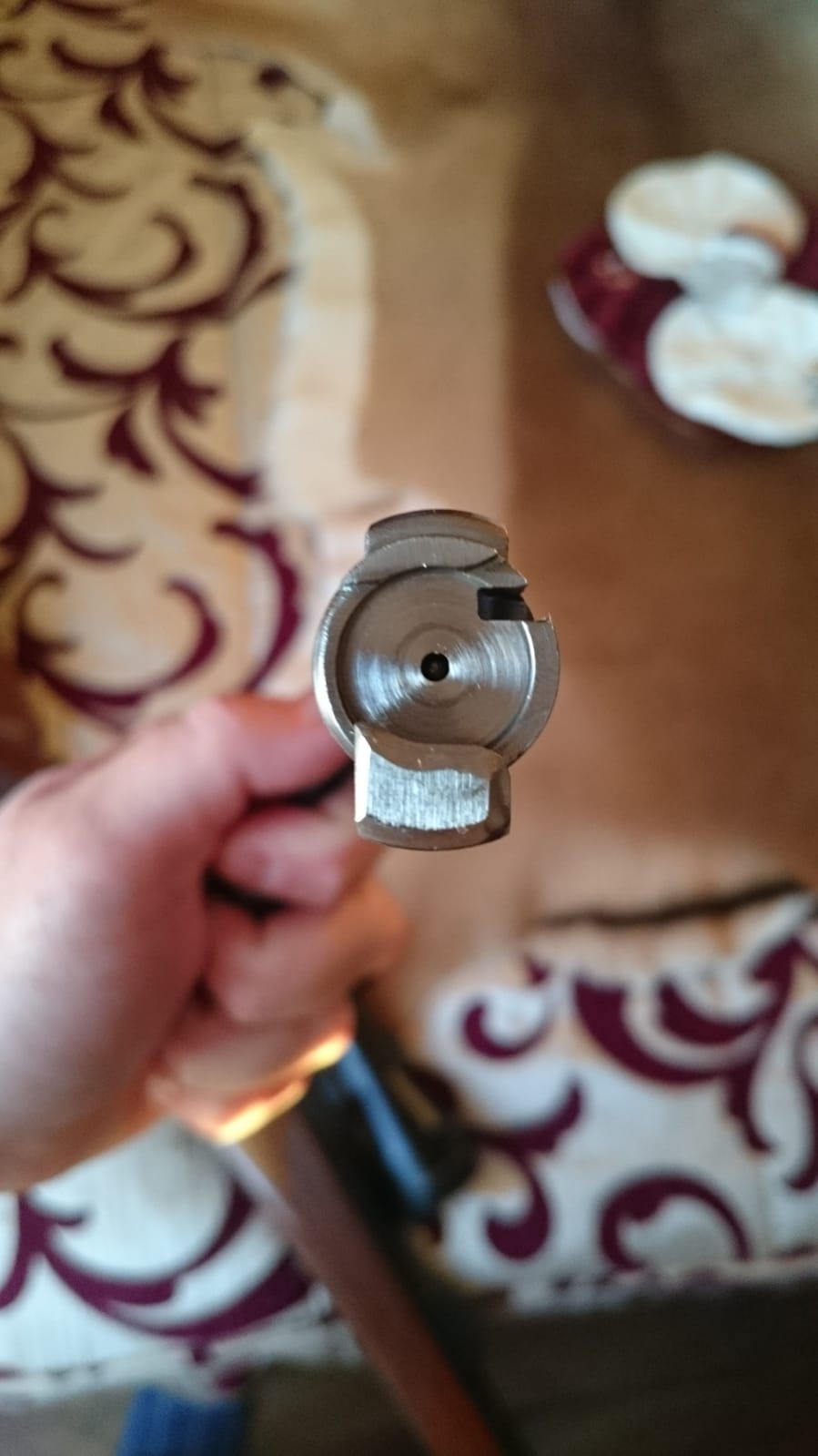 El cambio de color que aparece en el cañon es que al colocarlo en el armero despues de aceitarlo la esponja ha tragado el aceite del cañón.