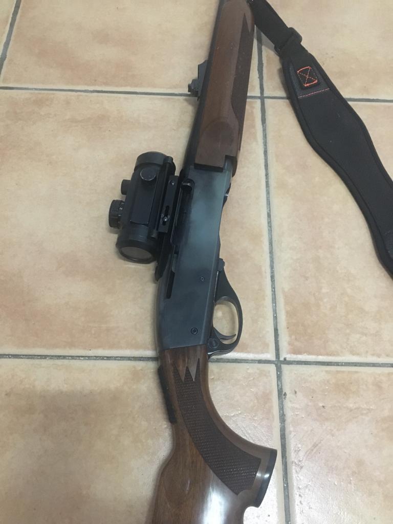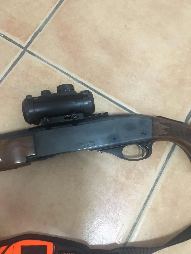 Un amigo vende este rifle remington 7400 en calibre 3006. No ha tirado ni dos cajas, lleva un carril weaver y visor de punto rojo.