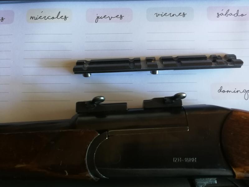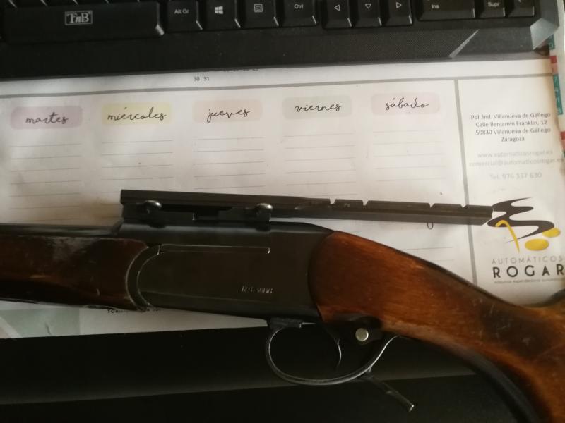 Es un monotiro, pero si te apetece usar un punto rojo o cualquier visor con monturas tipo "weaver" tambien tienes este adaptador.