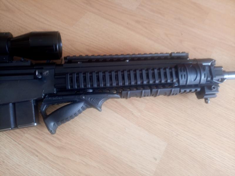 Lleva acoplado un guardamanos quad rail de un FAL, pero también tengo el guardamanos original. El quad ha venido muy bien para las esperas.