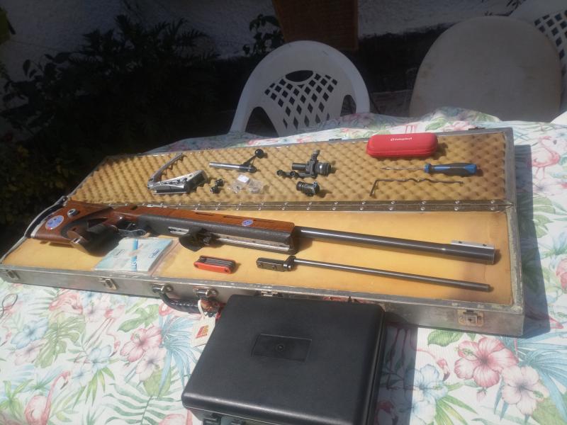 VENDO CARABINA SUPER MATCH MADERA ANSCHUTZ1913 Cañón 69 cms. Maleta de aluminio, cañón con muy buena agrupación dependiendo munición, RW50 RWS100 Eley Tenex SK roja o verde muy importante el indio que la maneje. Diopter Anschutz 20 clics, Tubo antirreflejos. Iris Walther Gheman de 6 colores, Doble polarizador, Eleva miras cromados, Túnel Anschutz original con juego de anillos metálicos y anillos de plástico. Túnel Thuker extra Largo con anillos de plástico M25, Rabera original Anschutz (la buena), Llave allen de fabrica negra, llave allen cromada, Aguja percutora con muelle, Seta especial para de pie.