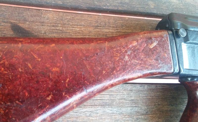 Hola, aparte de los pequeños roces o desconchados de la pintura y que se pueden apreciar en las fotos, la culata y que es de una especie de composite epoxi de madera tiene una fisura que se puede apreciar en la foto y que le hice yo mismo al tratar de desmontar la culata cuando la compre nueva para poder quitar el exceso de grasa que traía y que no repare ya que no le di importancia y realmente no me ha afectado en nada pero hay que ser honestos y por eso lo comunico a los posibles interesados.
