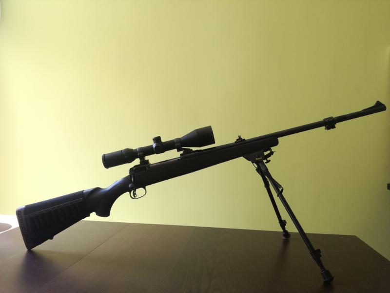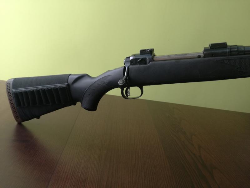 Vendo rifle Savage calibre 338 Win. Magnum, sintético, con bases Apel. Alza de fibra verde.