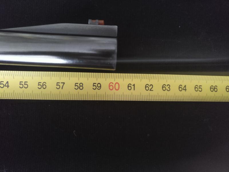 60cm de cañon, 102cm el total del arma y 3,3 Kg el peso
