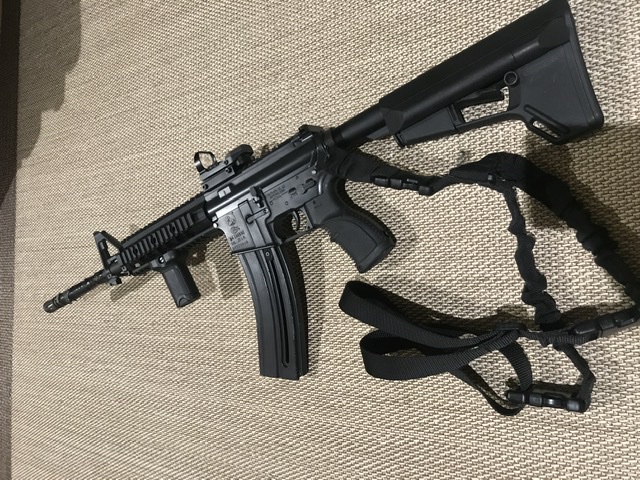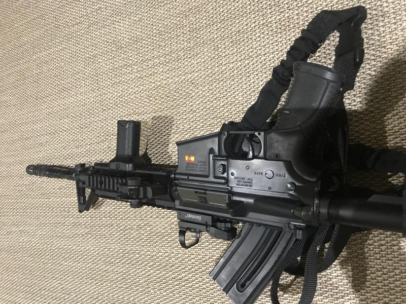 Maletín , cargador de 30, miras ortopticas, raíl para varios accesorios. Dos culatas, la de serie y una mejorada. Visor. Correa táctica ( está para hablar). Visor holografico. En foto falta visor de aumentos 、caja de transporte y resto accesorios que relatare en breve.