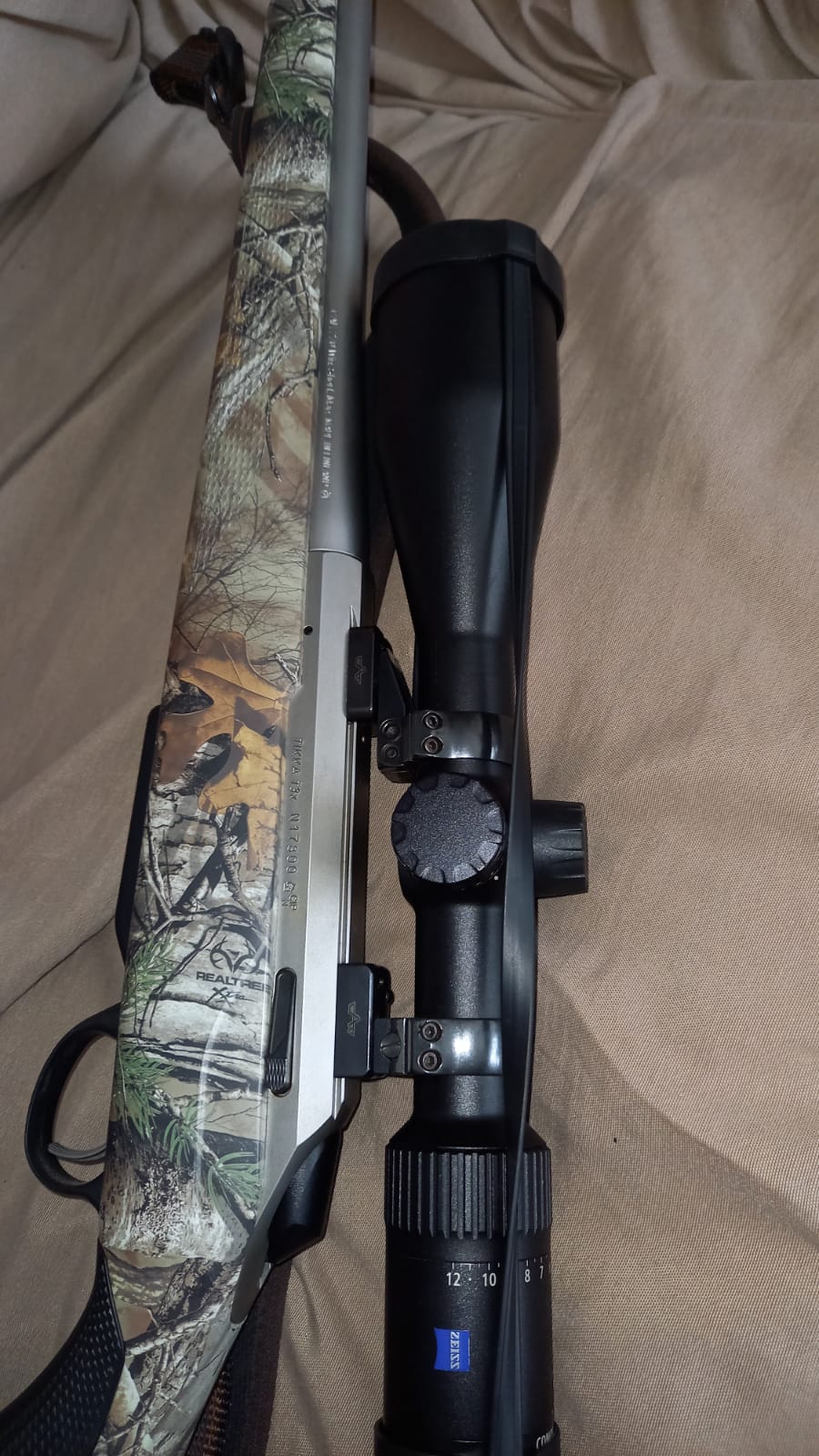 Tikka t3x acabado inox con culata camuflaje,calibre 270 wsm.Visor Zeiss v4 3-12x56. con monturas Appel.Correa de neopreno con el mismo camo del rifle y regalo balas .Muy poco uso.