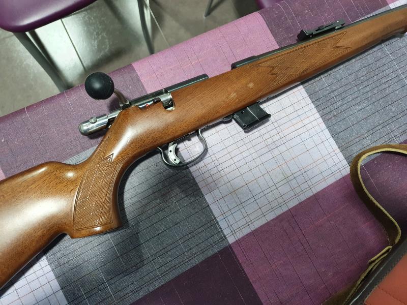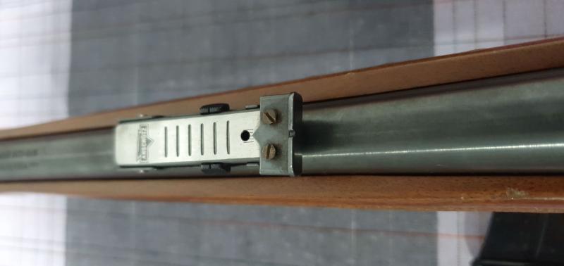 Alza regulable, gatillo con suplemento, cerrojo con bola de goma.