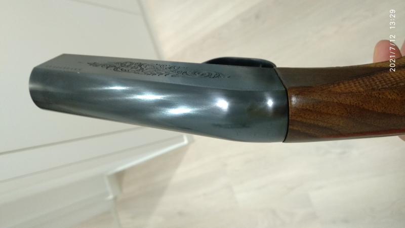 La compré en el año 83 ó 84. Hice con ella unos 200 disparos en ese mismo año, y después.... nunca más se ha vuelto a disparar. Fué un capricho junto a otros amigos. La he sacado cada año de la funda para contemplarla, y pasarle un trapo. Está como el primer día o quizá mejor; parece que la madera y el metal han ganado con el tiempo, como los buenos caldos. Se puede comtemplar en las fotos, no tiene ni marcas de las manos en el picado de la madera.