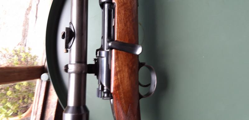 Deberías poner unas fotos dignas y decir que el rifle aunque es un Schoenauer está firmado por Rigby tanto en la acción como en el visor, una rareza muy muy interesante.
