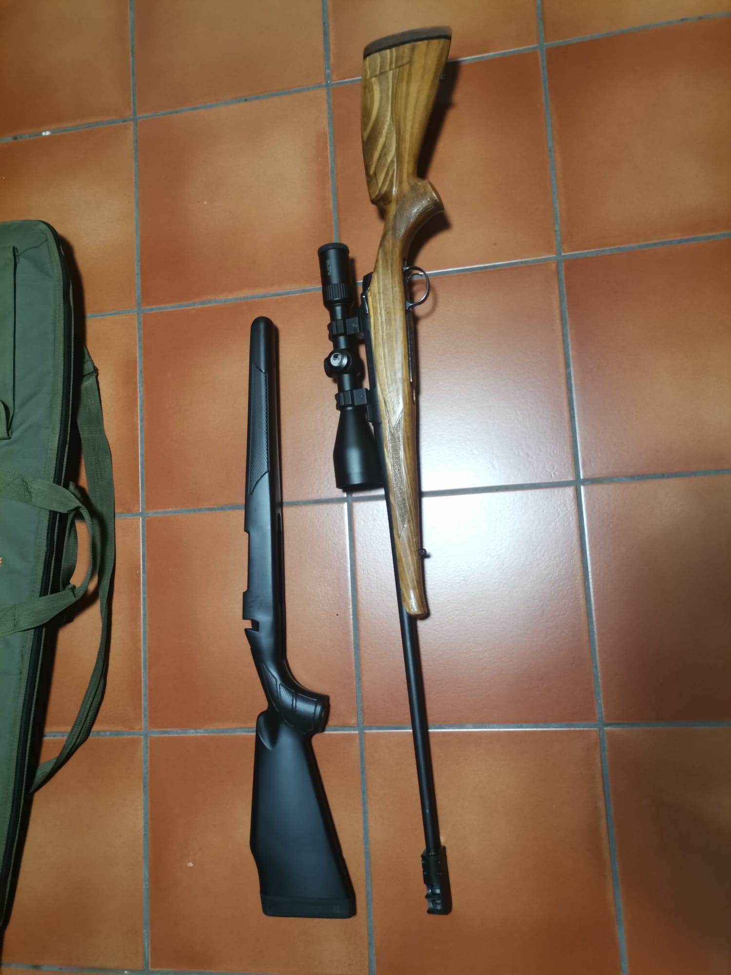 Dos culatas, sintético y de nogal hecha por un artesano.