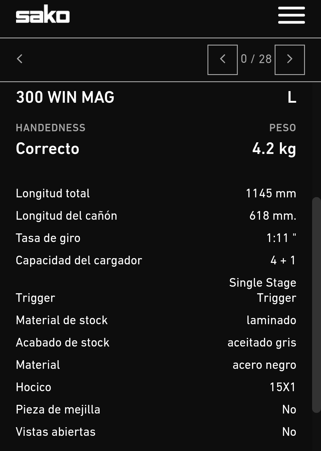 Buenos días, como el hombre propone y Dios dispone, me tengo que deshacer de uno de mis mejores rifles. Sé que me voy a arrepentir pero hay otras prioridades. Pongo en venta un rifle sako 85 modelo black wolf en calibre 300 wm. Rifle con cañón acanalado, rosca, gatillo al pelo y culata tipo GRS de sako. Tiene montado un carril contessa picatinny de 0 moas específico para el sako 85 L. La culata tiene carrillera ajustable en altura y cantonera ajustable en longitud . Es un rifle híbrido entre tiro y caza. La culata es de madera laminada en tono oscuro y es más dura que una culata de madera tradicional. Es un rifle pesado, pesa 4'2 kilos a pelo, pero no es cabezón, está muy bien equilibrado. El rifle está en excelente estado, se puede ver en Toledo. He conseguido unas agrupaciones excelentes con munición comercial con la sako gamehead pro 165 gr.el precio del rifle con el carril es de 1700 euros más portes. El rifle y las monturas costaban, porque creo que ya no lo hacen ,2900 euros.Pongo unas fotillos. Un saludo. RETIRADO DE LA VENTA