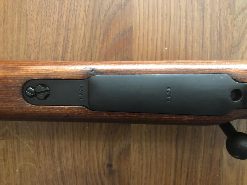 Puedes observar que, aun cuando la numeración sea coincidente, los tipos numéricos son distintos en las distintas piezas, como por ejemplo la nuez del cerrojo o el propio cerrojo, que además en tu caso tiene la numeración girada 90º, cuando los kar98 llevaban la numeración del cerrojo grabada longitudinalmente, en línea con el cañón, lo que significa que han sido renumeradas y su origen no es el mismo que el del resto.