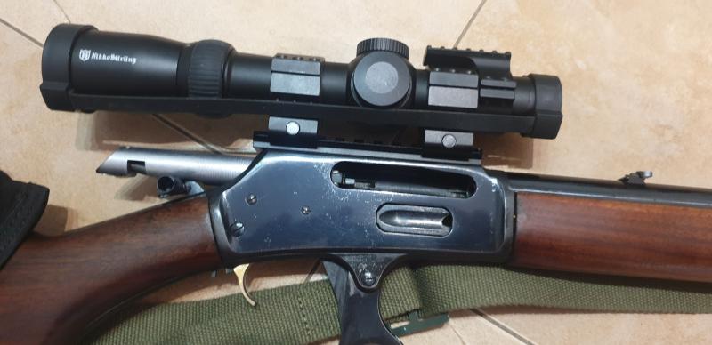 Marin 444 en perfecto estado con carrillera porta munición,correa porta fusil cantonera decelerator y visor de batida nikko stirling 1-4×24 con retícula iluminada 4A,el visor lleva apatador para poner una linterna