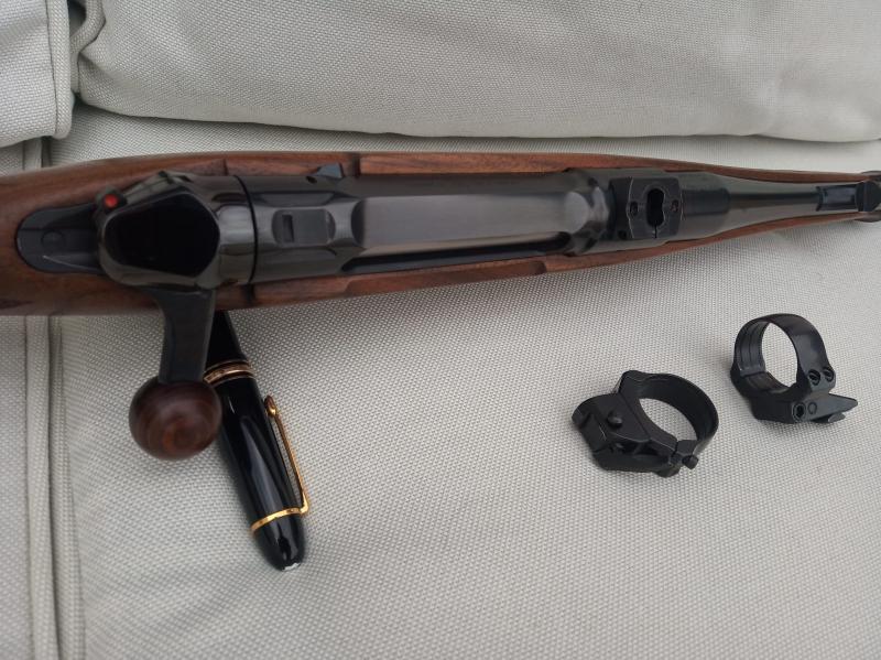 El rifle tiene integradas bases en la acción y en el precio se incluyen anillas abatibles Recknagel de 30 mm.