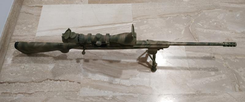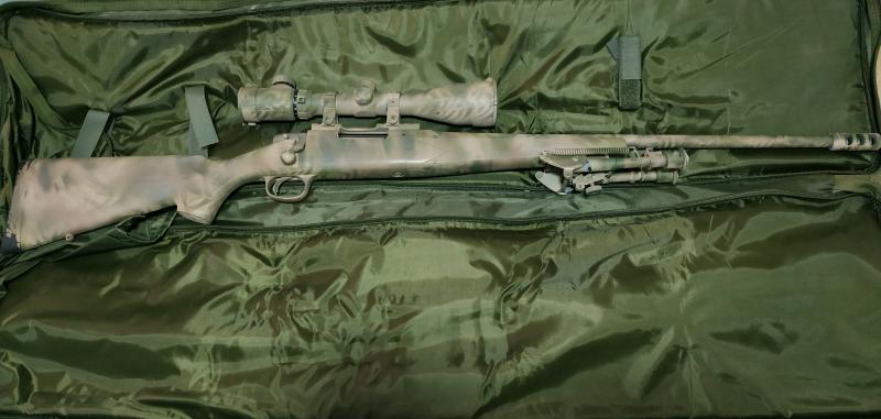 Pintado en camuflaje, con freno de boca, bipode, visor NCSTAR MAGNUM 3-12X50 GEN II. Incluye funda de transporte y porta cartuchos en culata extraíble.