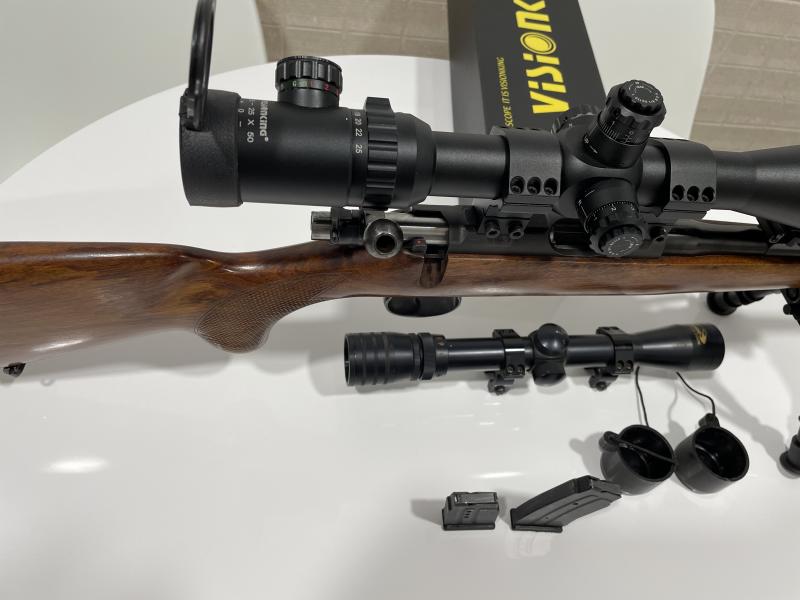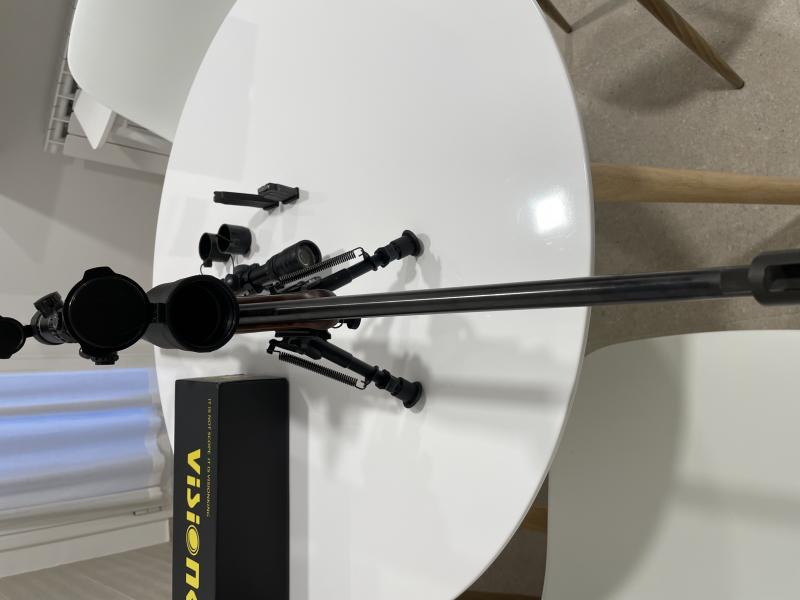 Se vende con 2 cargadores de 5 y de 10, metálicos de los que ya no se ven, bipode tipo harrys, visor Visionking 8’5-25 x 50 (el que está puesto) y de regalo otro Gamo 3-9 x 32.