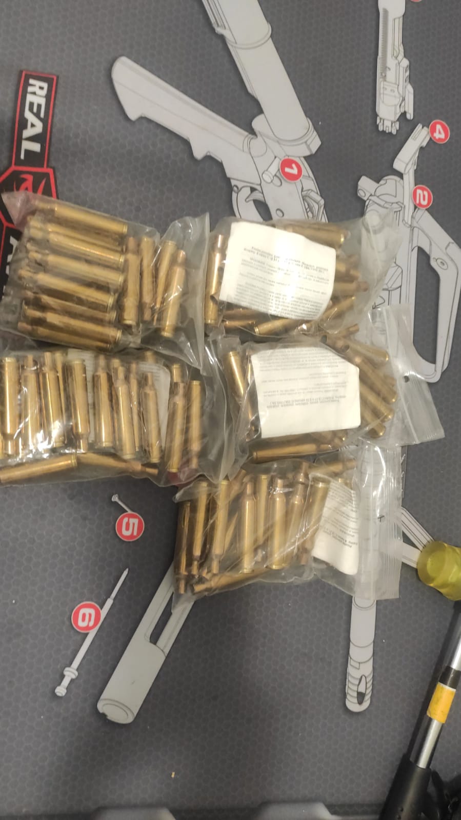 Incluido los dies RCBS de competición , 100 vainas Lapua ( 90 sin estrenar y 10 con 2 disparos con cargas reducidas ), las otras 5 bolsas de vainas nuevas y todo lo que se ve en las fotografías menos el anillo de la Turret .