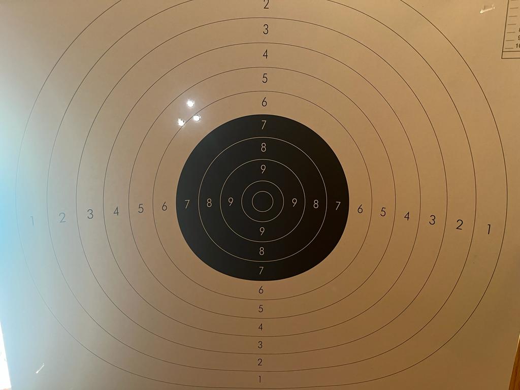 Incluyo una agrupación realizada en presencia de un interesado en el arma. Se ha disparado a 100m posición tumbado con apoyo en saquete y empleando municion de caza no optimizada ( punta Vulcan de Norma).