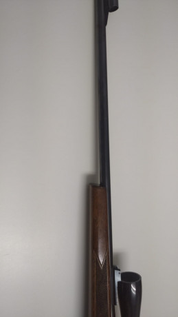 El caso es que no he pegado un tiro con ella. Se encuentra en un estado medio de conservación. Sin óxido. Le falta el alza que se la quitaron para poner el visor. El visor es antiguo pero parece robusto.