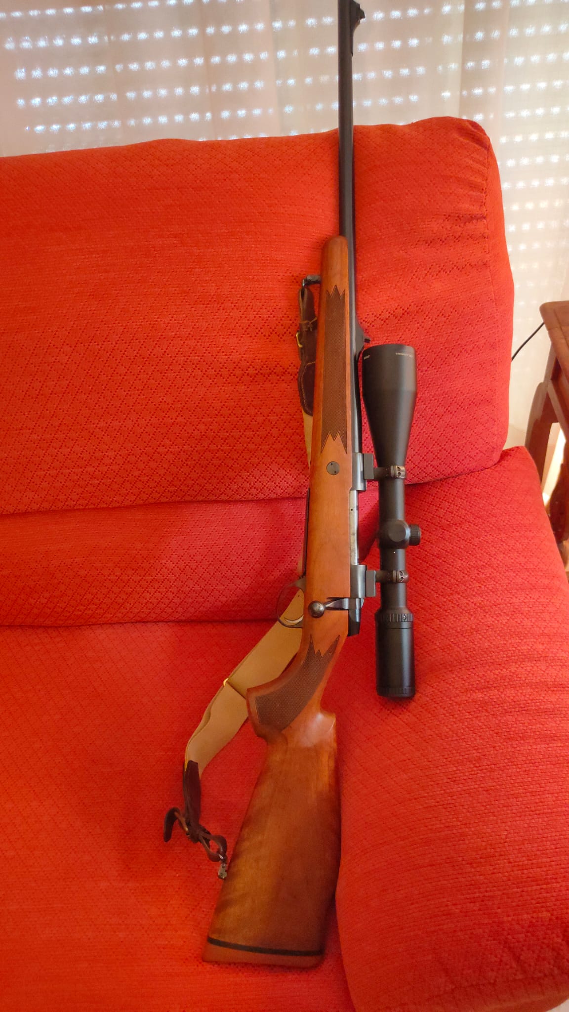 Lleva monturas y anillas originales SAKO OPTILOCK y un visor Bushnell Trophy XLT 3-12x56 (que dá el apaño pero no hace honor al rifle).