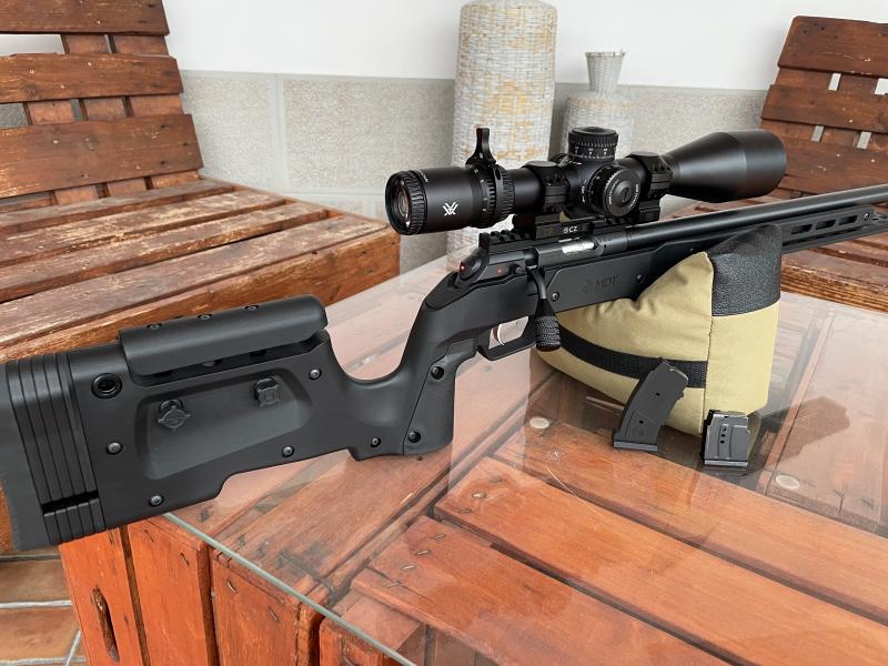 Vendo mi carabina CZ 457 MTR (Cañon pesado y recamara Match) montada a capricho para PRS. Motivo, soy de Murcia y por aqui PRS ninguno, ni cerca. Va montada en un chasis MDT XRS color negro, con rail arca. De óptica lleva un Vortex Venom 5-25 en Mils, con anillas Hawke sobre un picatini original de CZ de 25moas. Como mejoras, el muelle de gatillo mas suave original de CZ Parts y una “pera” mas grande para el cerrojo. Además del cargador metálico original de 5 rondas tengo otro, también original pero de plástico, de 10 rondas. Esta todo impecable, sin marcas ni nada de eso. El cañon ha salido muy muy bueno, agrupa muy bien con RWS Special Match, munición de gama media… con gama alta tipo R-100, Tenex y similares tiene que ser un laser… digo tiene porque no lo he probado. Quiero venderlo todo en 2100€. La entrego con una funda Smith and Wesson blanda acolchada que le queda perfecta y regalo una guía para la baqueta, una banderilla y un símil de cargador de seguridad. Todo supera de largo los 2600€ y como digo, esta igual que nueva con la ventaja de poder venir, verla y probarla antes de comprar.