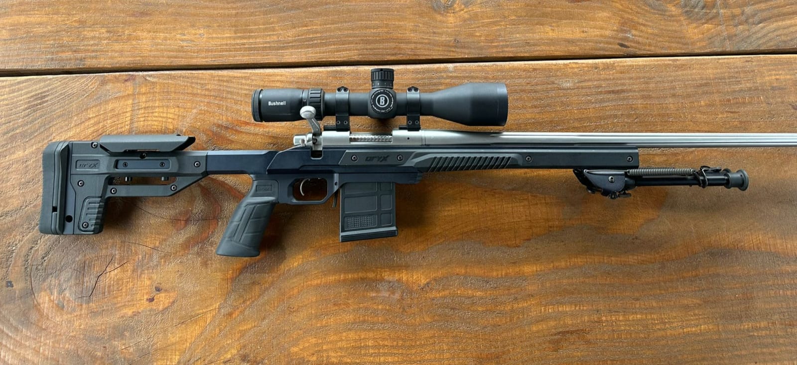 La mía tiene el rail Arca, bipode MDT y la mira es Vortex Strike Eagle 5-25x56 FFP MRAD.