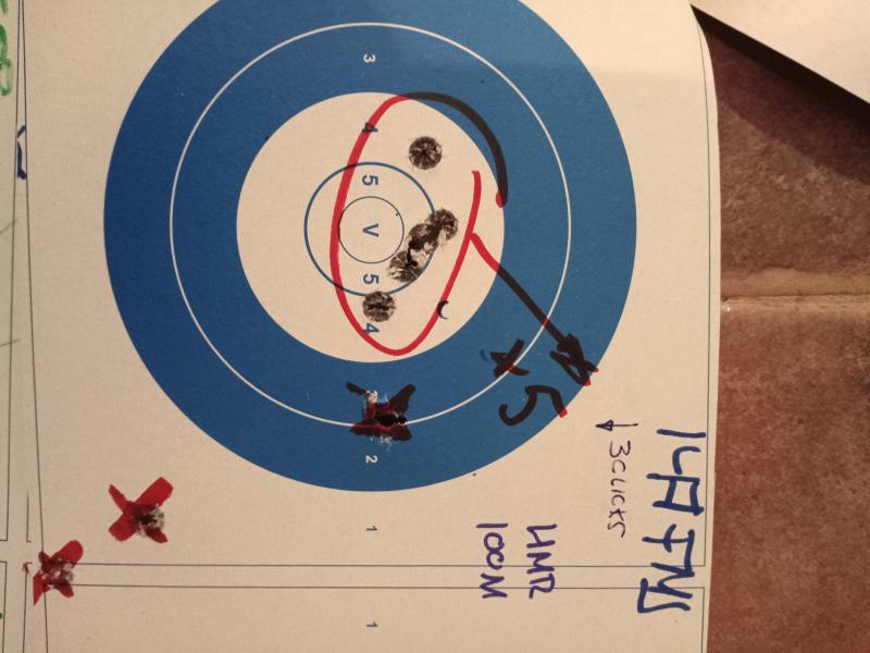 Algunas dianas de pruebas a 100m, tumbado en suelo, con bípode, saquete trasero hecho en casa, disparador de serie tal y como viene de fábrica y munición recargada, puntas de 110, 147, 165 y 175 :sniper