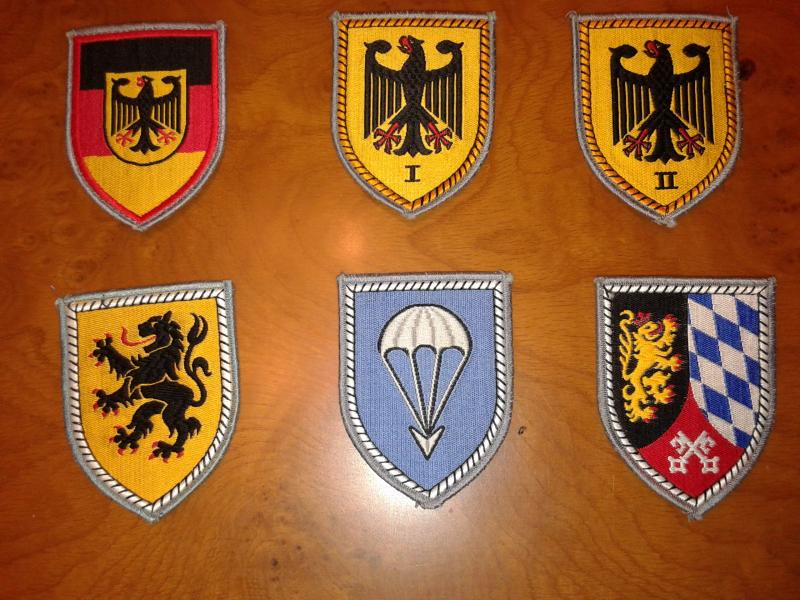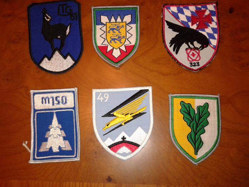 Vendo escudos en tela, todos ellos originales de distintas unidades del Ejercito alemán. La mayoría son del Ejercito del Aire pero también hay algunos de la Policía.