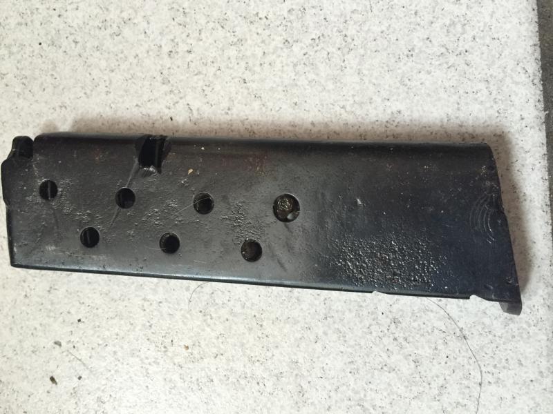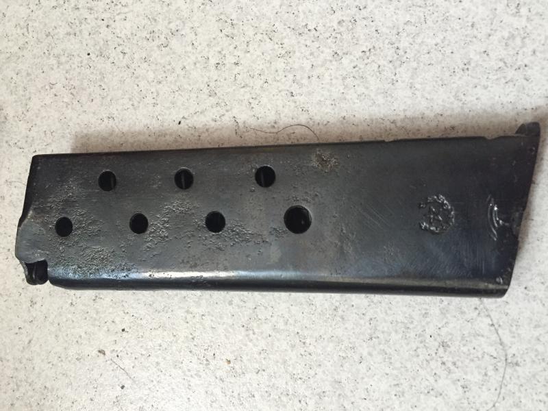 Pavonado y con signos de haber tenido algo de óxido, presenta n corte para que funcionara en la 1913.