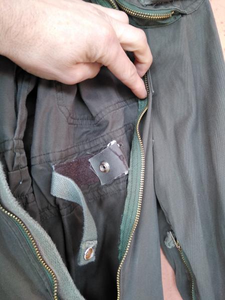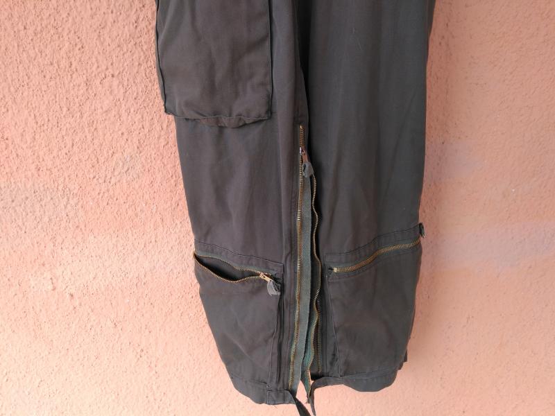Tienen 7 bolsillos, dos en la parte de abajo, dos en los muslos que fueron añadidos posteriormente , dos en el pecho y uno en la manga.