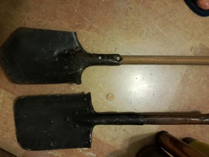 Palas de la guerra civil. Una tiene el mango original, la otra no. El metal es original en ambas.