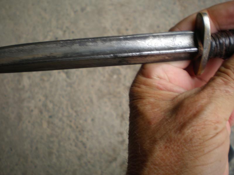 Eso vendo cuchillo o daga , con marca de Toledo , pero parace grabado no cuños, la funda no es la suya diría, pues según la historia se hacían sin funda , para ser funcionales y rapidos.