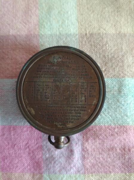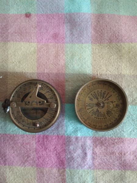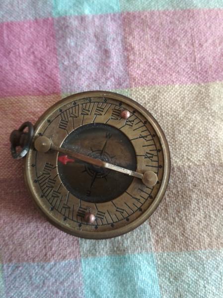 Se vende brujula y reloj de sol, funcionando. Lleva su funda de piel y necesita alguna limpieza. Pido por ella 50 euros.