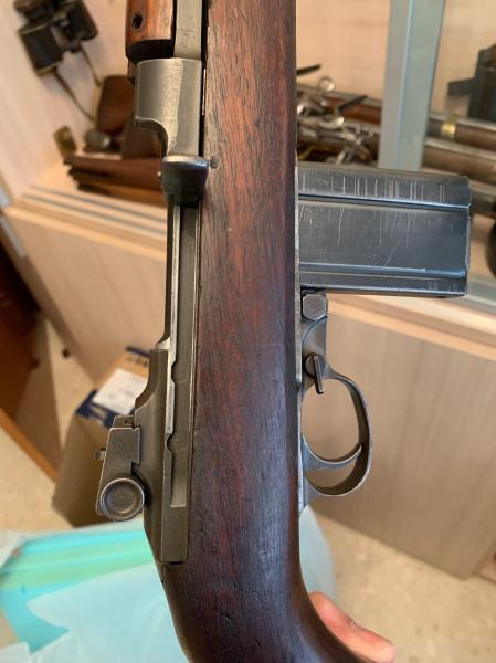 Vendo U.S. CARABINE M1 inutilizada en calibre .30M1, fabricada por UNDERWOOD en el año 1943, correa y aceitera originales. El certificado de inutilización es nominal por lo que el comprador debe de mandarla a BOPE para poder tenerla en su domicilio; pido por ella 300 euros y los portes los pagamos a medias.