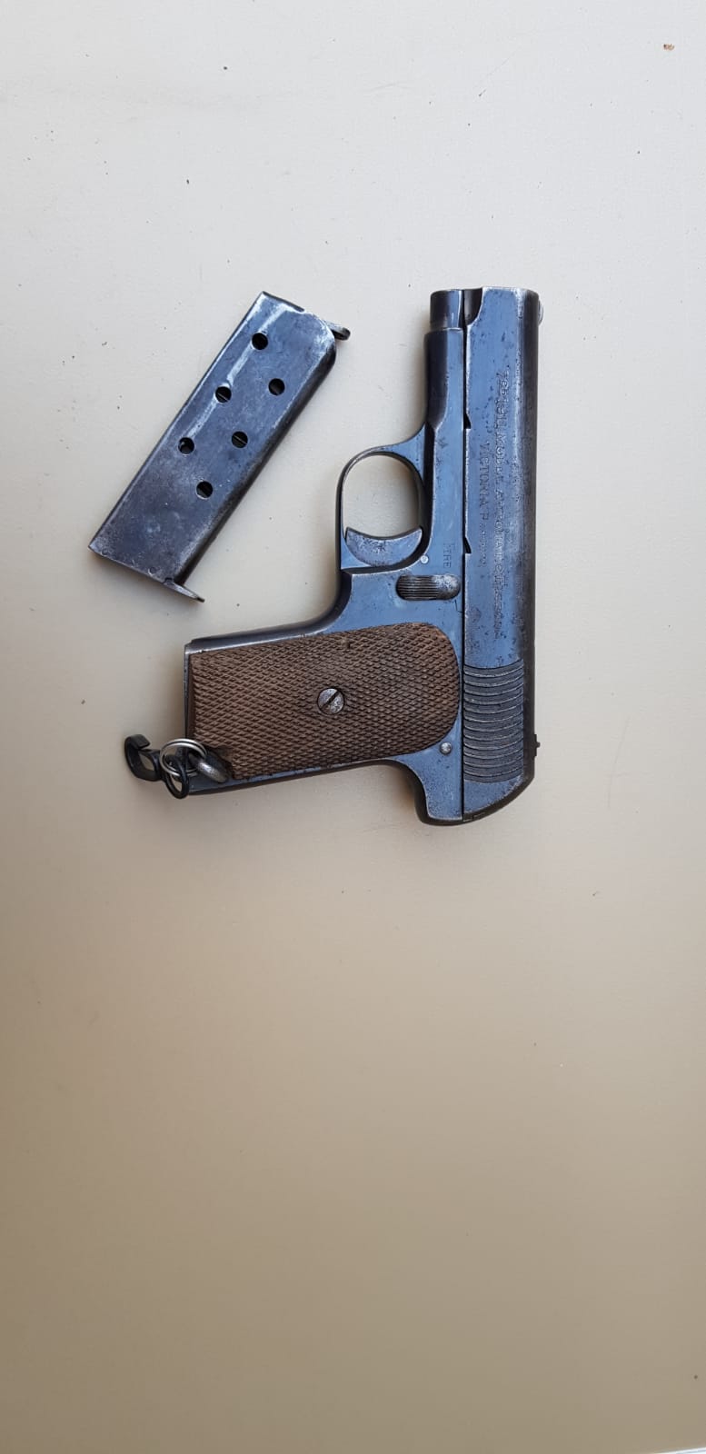 En bien estado la patina se limpia con cuidado. cal 7.65mm