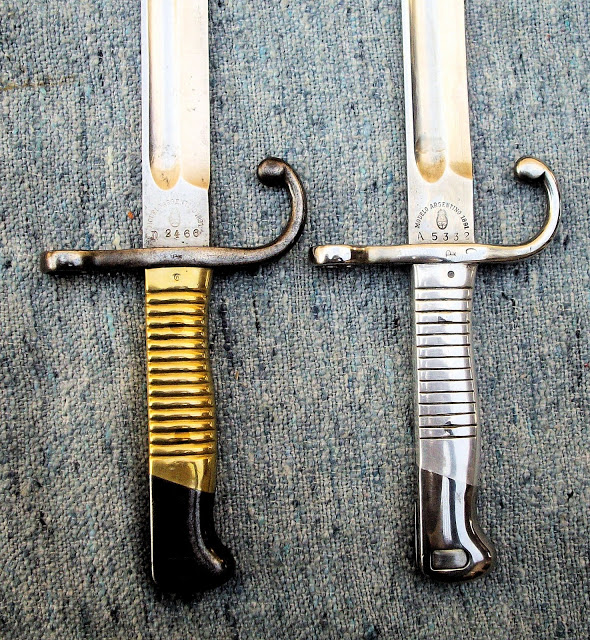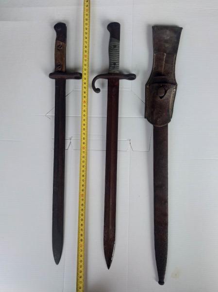 La otra, podría ser la bayoneta española modelo 1913, pero su deterioro me hace no estar seguro.