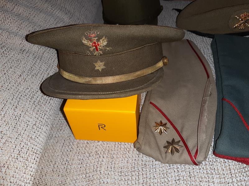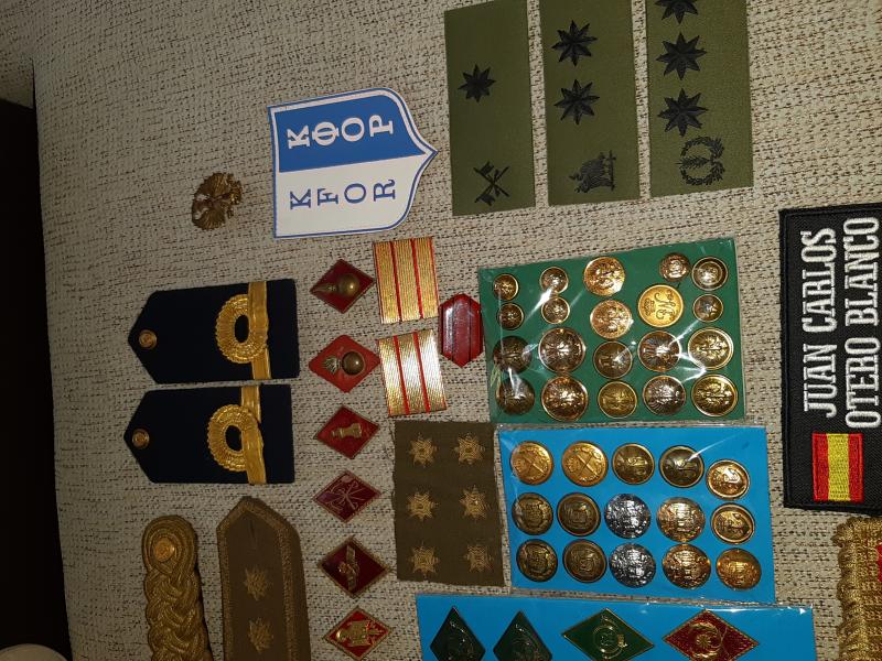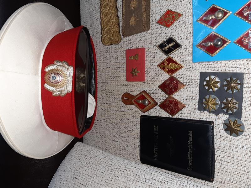 Lote de parches e insignias militares españolas,gorros y gorras (la gorra de plato Blanca es de la Policía de Moscú),cartucheras y tahali para Mauser,botones militares españoles.....etc. Se encuentra en Valladolid. Todo 100€ más 9€ de gastos de envio por correo certificado. Si se recoge en mano se regala un libro de militaria de la Division Azul. VENDIDO