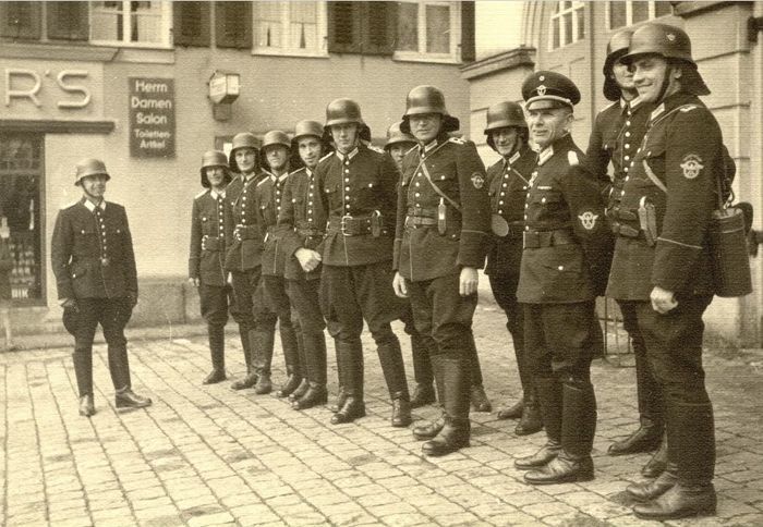 Casco modelo de 1934 perteneciente al cuerpo Feuerschutzpolizei (Cuerpo de Policía de Protección contra Incendios). Este cuerpo se fundó en Alemania en 1938. Su objetivo principal era la prevención y extinción de incendios (bomberos), pero también realizaba tareas de mantenimiento del orden público y lucha contra la delincuencia.