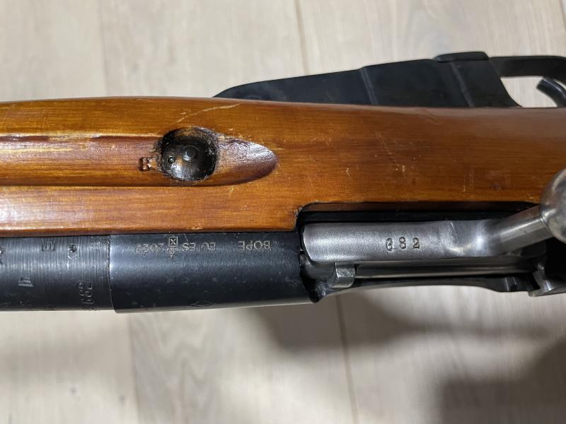 El cerrojo se puede extraer. Misma numeración en todo el rifle. Precio 450€