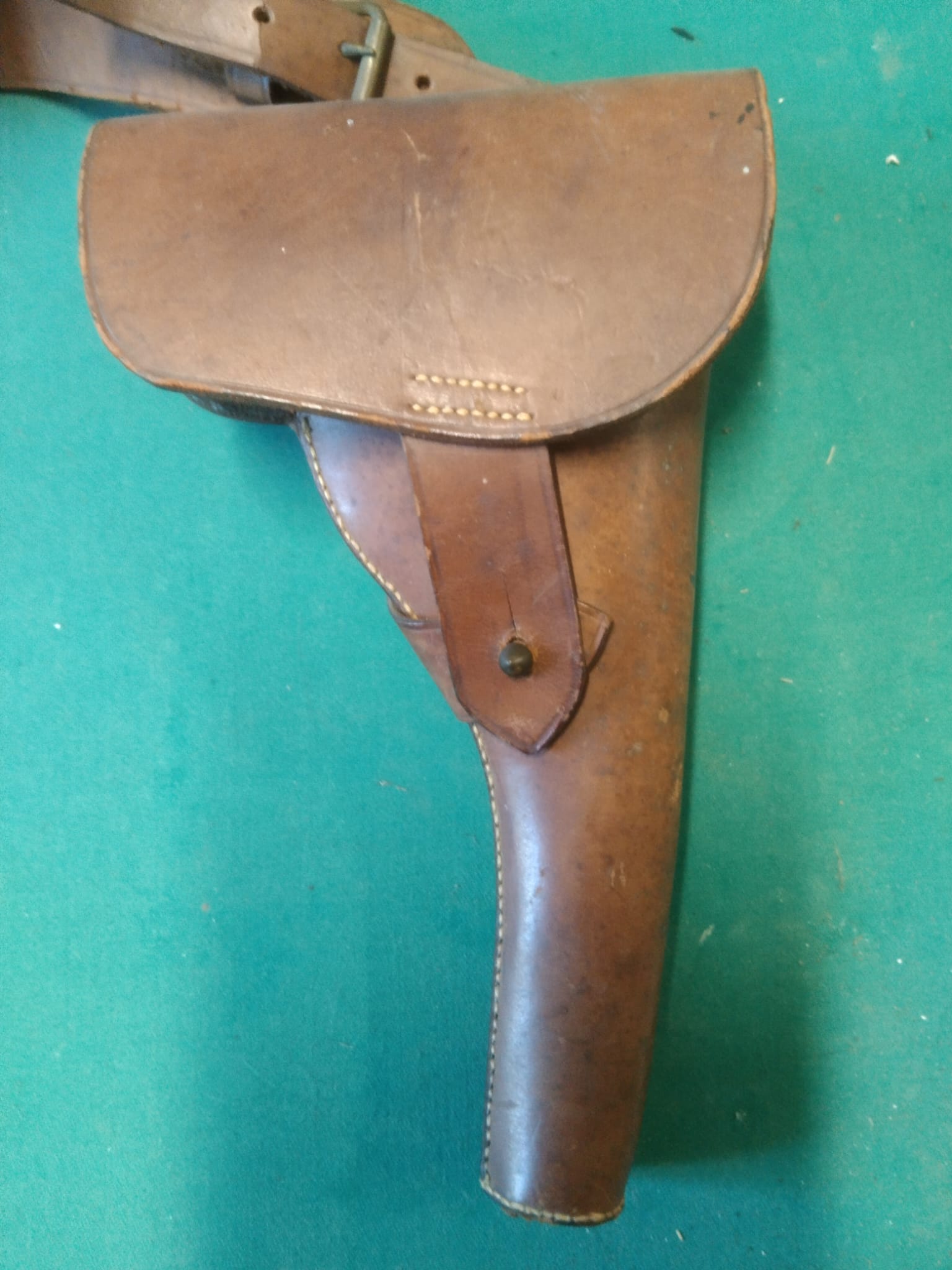 Hola! Por fotos es complicado datar nada. Pero tu impresión me parece correcta. El cuero no parece tener tantos años, ni de confeccionada, y menos de uso en servicio. Y las costuras se ven perfectas, perfectas...demasiado. Sin ser categórico, no lo veo sinceramente...si lo que buscabas era una original de época, yo seguiría con la búsqueda. Un saludo, y suerte!