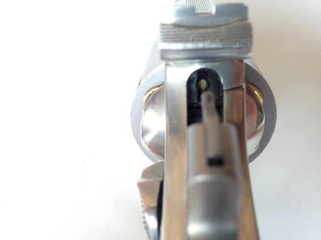 Ahora os muestro fotos de la distancia tan mínima que existe entre dicha anilla y el tambor. Se trata de ...1 milímetro...!! de nuevo, exáctamente igual que ocurre con el arma real.