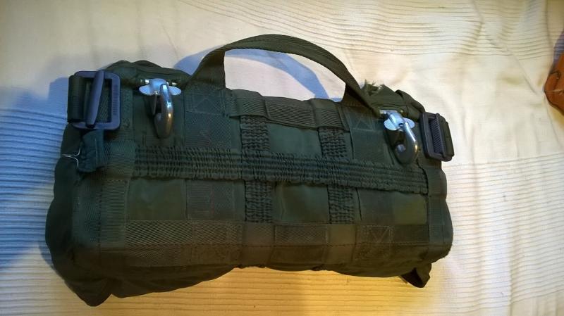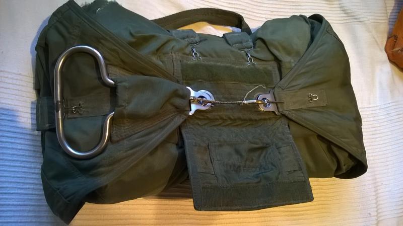 Vendo bolsa de paracaidas de emergencia de la Fuerzas Armadas Españolas.. Ideal para reenactment o hacer bandolera. OJO, no incluye paracaidas, es solo la bolsa y el asa de apertura manual!!! 90 Euros mas portes. Estado bueno salvo pequeños cortes zurcibles en una esquina.
