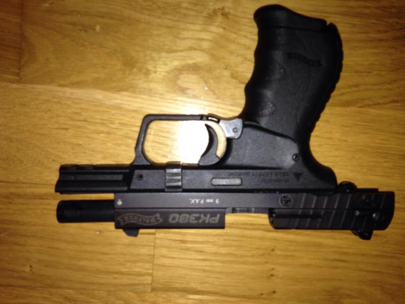 Se trata de un arma de fogueo de 9 mm P. A. K. A la que he pulido la recamara del cañón para que su parecido con el arma real sea completo.