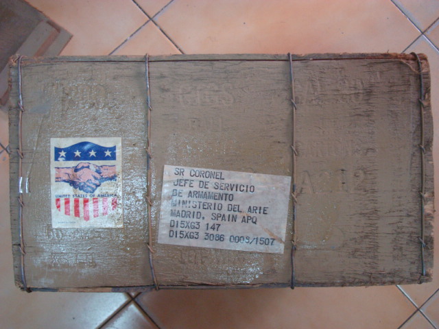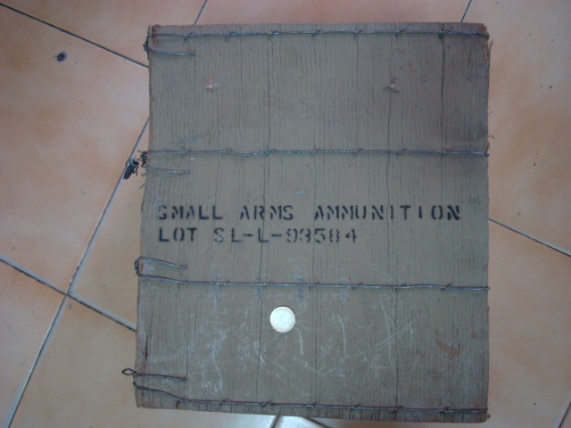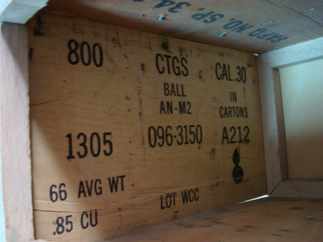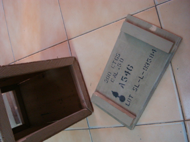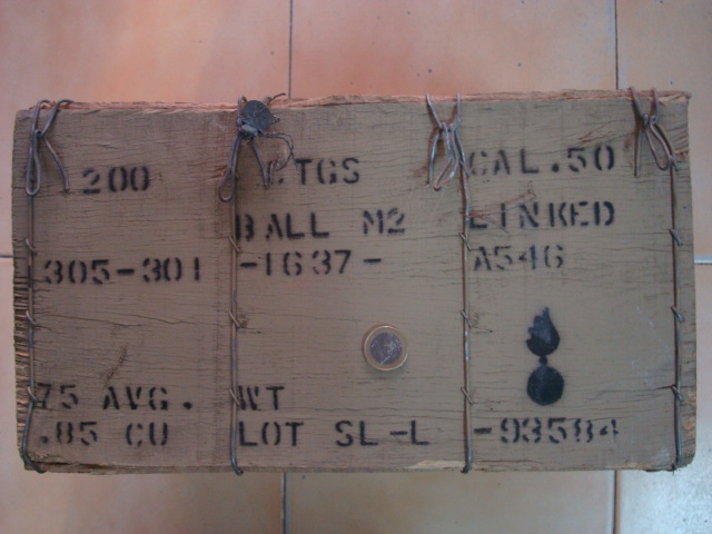 Tambien caja de munición que por fuera pone calibre 50 y por dentro, calibre 30. Precio, 30 euros