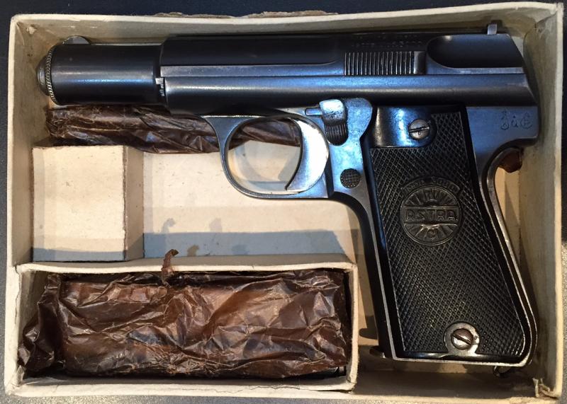 Pongo a la venta una Astra 3000 del año 1946, calibre 9 corto en muy buen estado, con su caja original, manual de instrucciones y dos cargadores. Se encuentra asentada en libro de coleccionista y dispone de certificado de arma histórica.