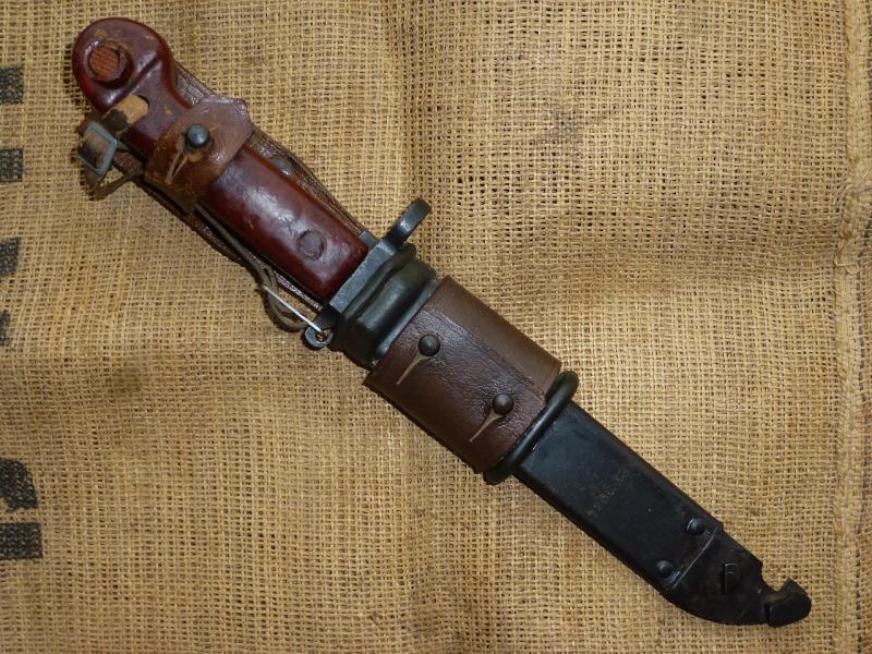 Vendo bayoneta rumana del fusil AKM tipo II traida de Croacia. Estas bayonetas fueron compradas para abastecer a las tropas croatas en su última guerra debido a la falta de todo tipo de armas. La bayoneta esta en buen estado y tiene mismos números en la funda y bayoneta. Tahaliz de cuero, función cortalambres, hoja con filo original de fábrica en en muy buen estado estado. Con fiador de mano.