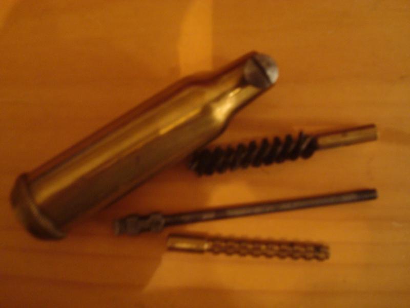 Equipo limpieza Suizo para armas cortas, época pistolas P06,P210. Tiene destornillador.