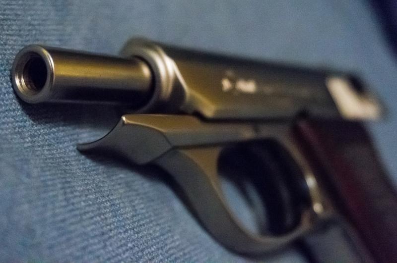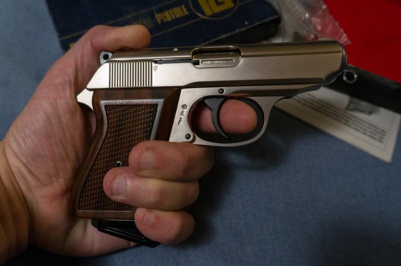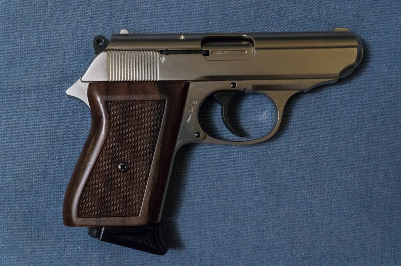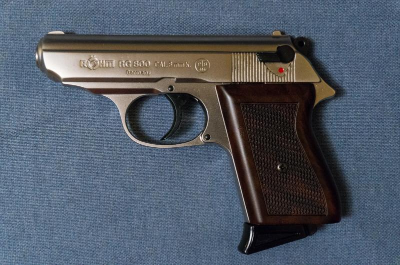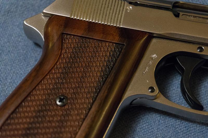 Detonadora Rohm RG800 8mm K. Acabado Niquel original de fábrica (no modificada) y cachas de imitacion madera (también de fábrica). En mi opinión, la réplica de la Walther PPK con mejor calidad.